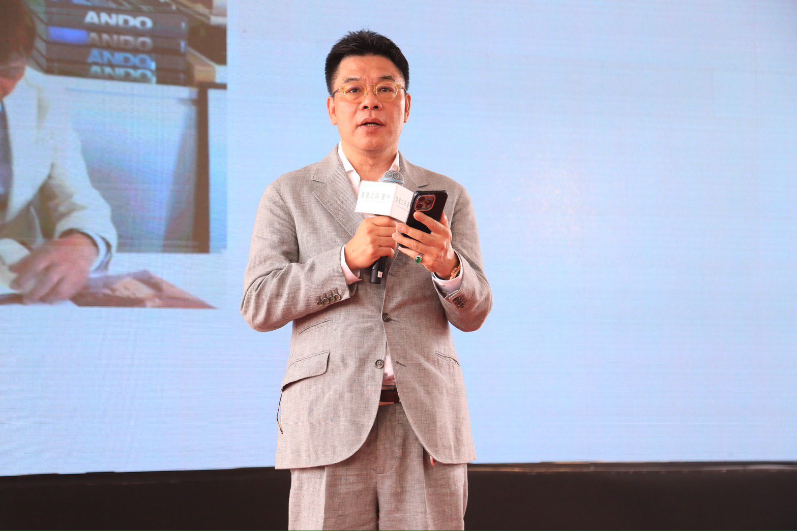 建築師安藤忠雄也透過視訊親臨見證並與全場互動,不僅比出手指愛心、讚等手勢掀活動高潮,更線上致詞分享設計理念。他表示,「童書之森」以「為未來孵的蛋」為概念,橢圓形建築象徵人類與自然之間的平衡,而中空的核心則代表地球的中心,希望這座座落台中的童書之森啟發孩子在知識與閱讀中找到自己的未來,不是只有AI,小朋友也要靠自己去判斷生存的能力,找到自己最想讀的知識;他也提到,台灣女性強韌且智慧,是孩子的媽媽,更是國家未來的重要推手,祝福女性活到100歲,持續為台灣未來努力。