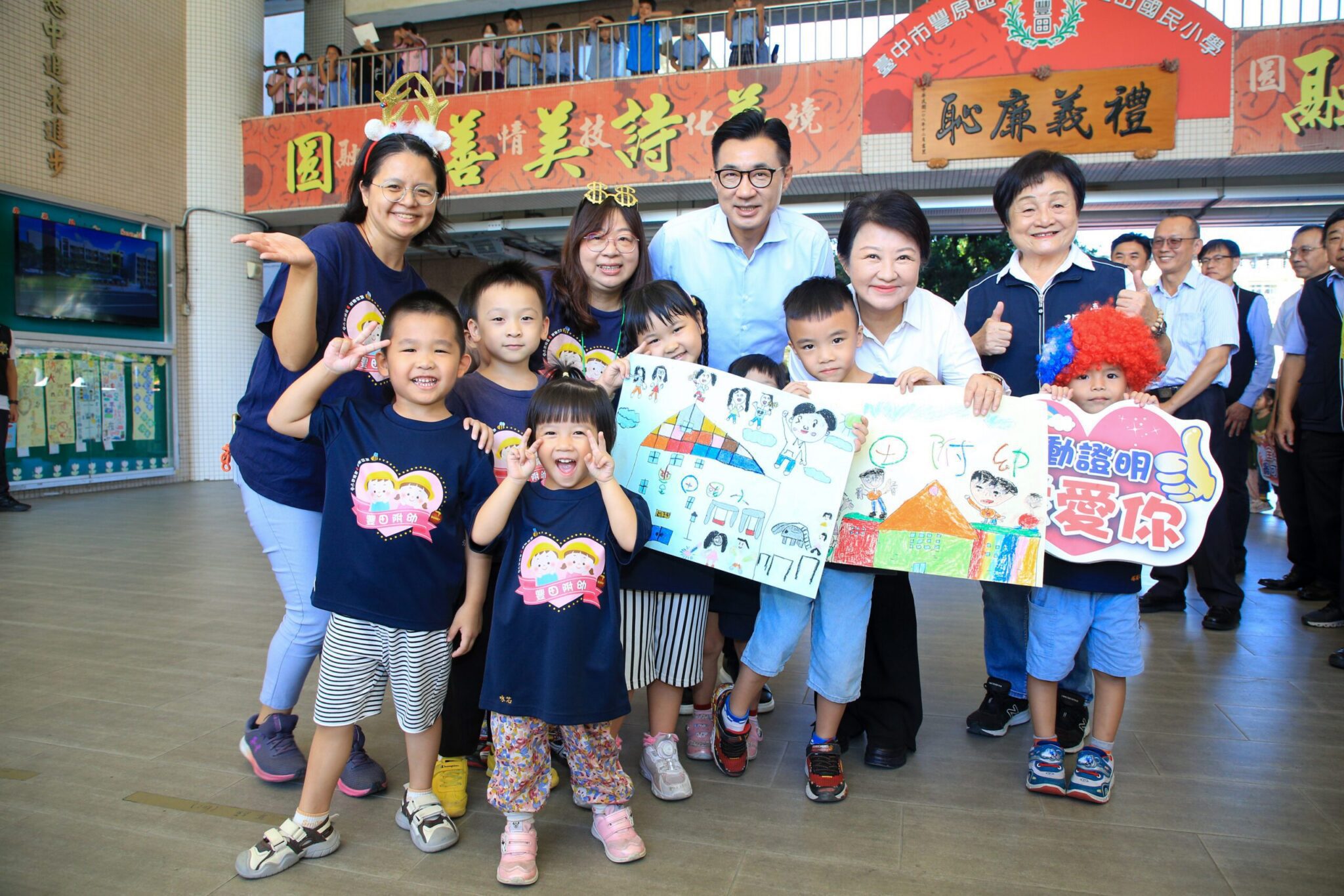 盧市長說,她特別重視教育,自她上任以來,台中市教育預算占市府總預算比最高,也是六都第一,盼以教育為城市打下好基礎,帶動城市永續發展。她提到,台中教育三大計畫,包含「老舊校舍拆除重建」、「給孩子一個禮堂」及「可調式課桌椅」皆持續進行中,希望給孩子們良好的教育環境。