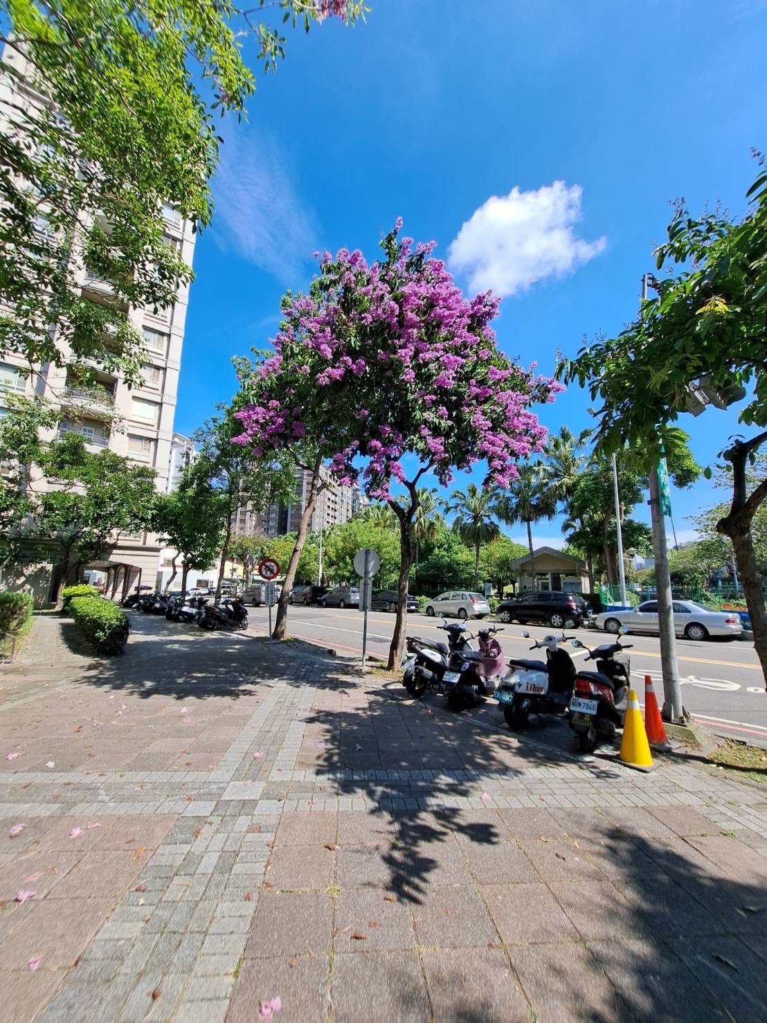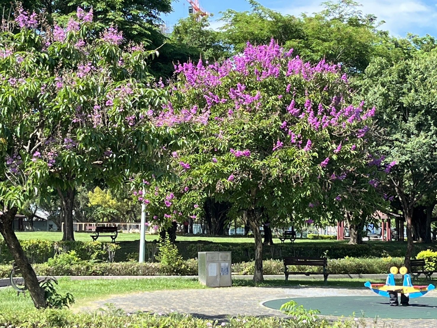 而大花紫薇則常見於旱溪東西路、西屯區福順路、北區忠太東路、建國市場周邊及南屯區環中路四段沿線。此外,春社公園、黎頭店公園、北屯區廍子公園、南區十全公園等大小公園中也可見其繽紛倩影,為社區增添繽紛色彩與自然氣息。