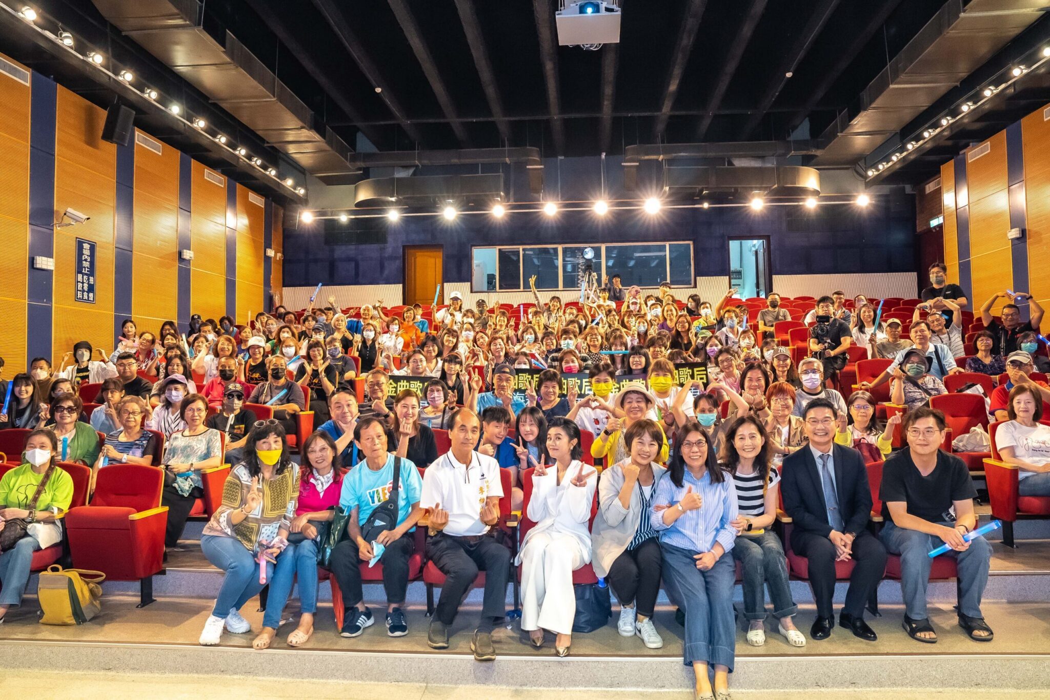 朱海君(中)帶領全場觀眾高喊「感謝您」向鳳飛飛深深致敬 照片提供:鳳飛飛故事館
