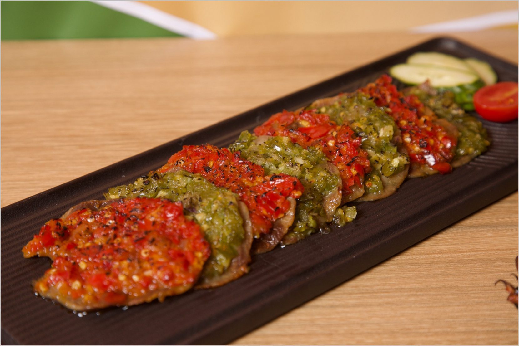 煎製至微焦的牛肉搭配紅綠兩種辣椒醬,鹹香微辣、層次豐富,是巴東家庭的經典主菜。
