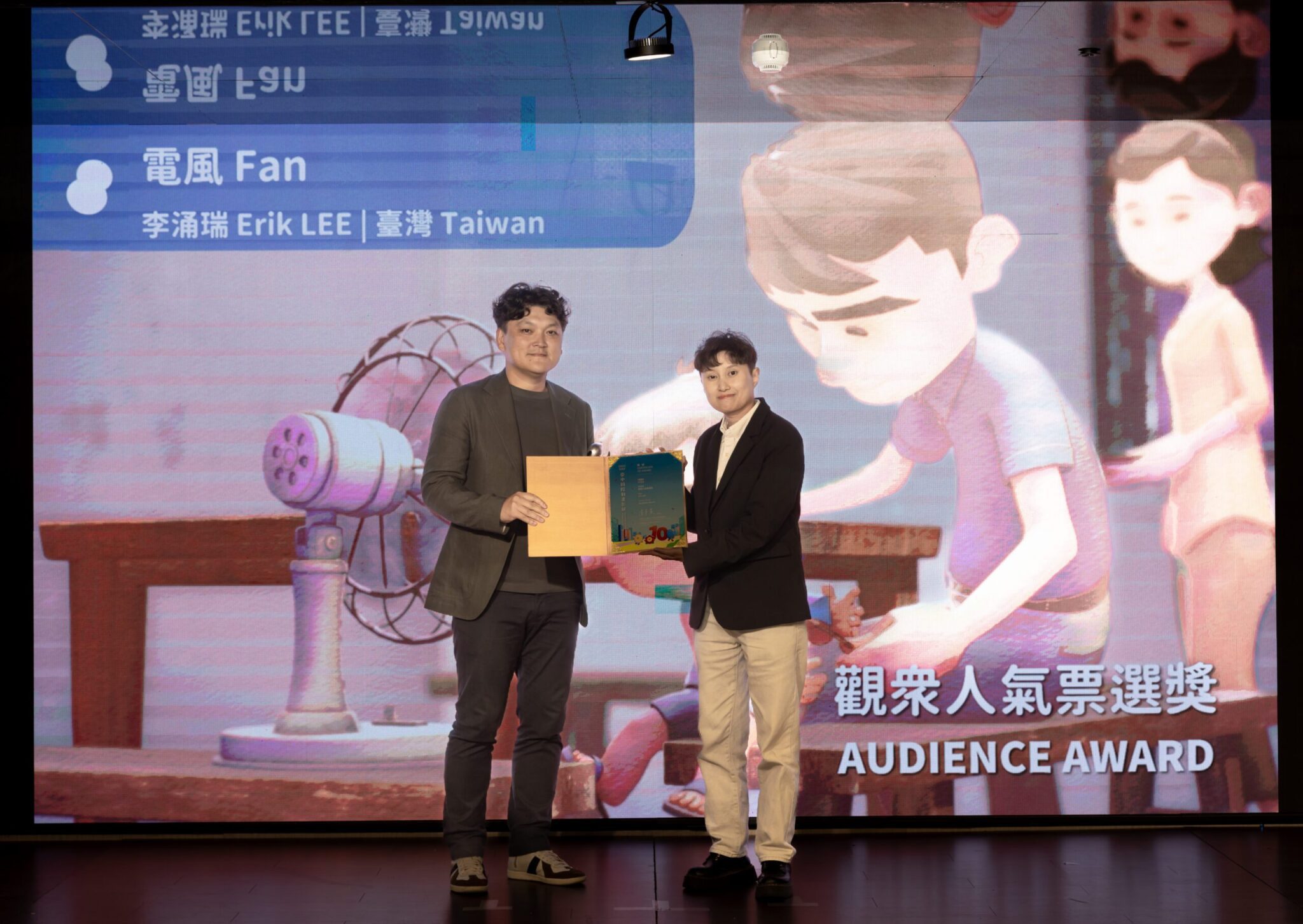 「觀眾人氣票選獎」由主辦單位台中市影視發展基金會副執行長張婉榆頒發給台灣作品《電風》(Fan),以明快的節奏輕描家庭中親人離世的悲傷與記憶的傳承,擄獲不少觀眾對童年級家族情感的共鳴。另外由上百位小小評審共同票選出的「最佳兒童短片獎」則由西班牙《作業好夥伴》(Homework),該片以課堂中最常見的文具搖身一變成超萌學童,演繹教室日常的友誼變化,相當逗趣。
