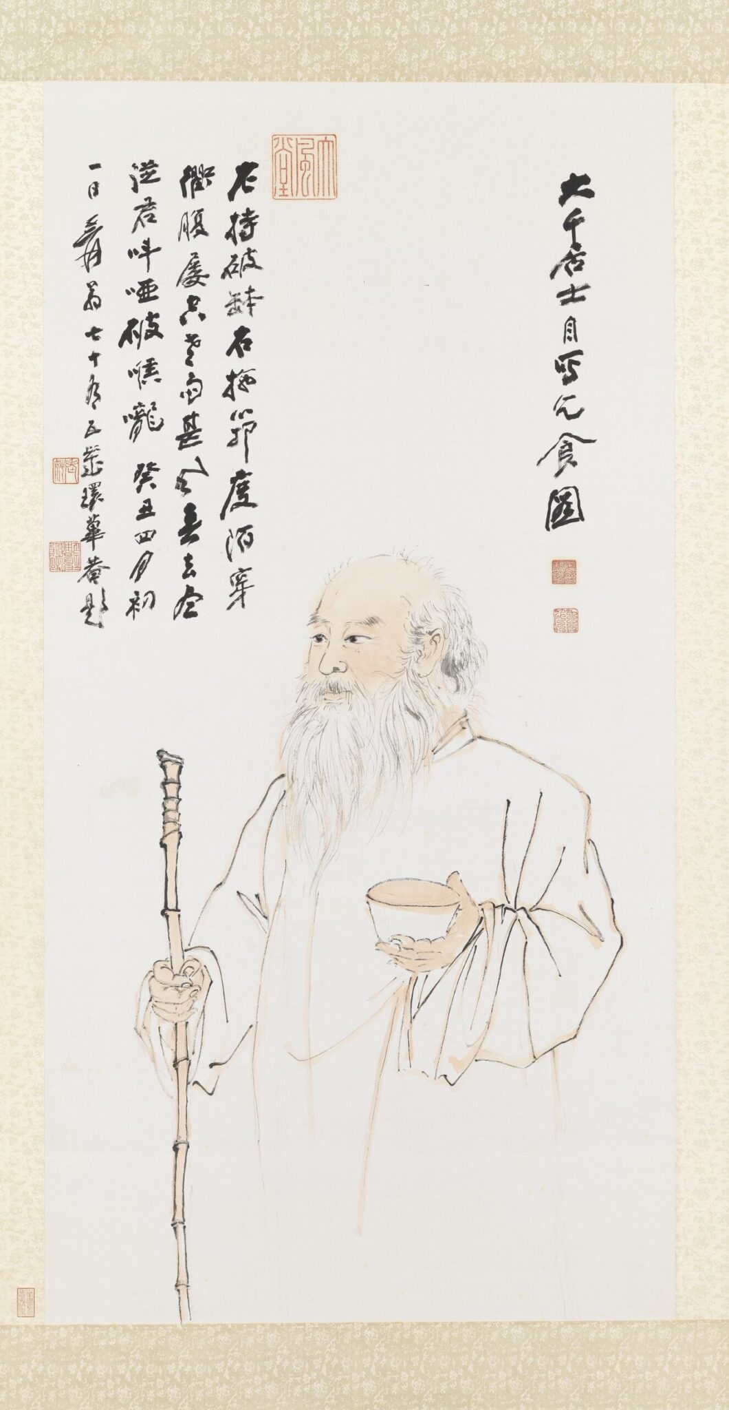 二十世紀最負盛名的傳統繪畫大師張大千,來自以美食著稱的四川。他個性灑脫,座上常嘉賓雲集。本次展出張大千的自畫像〈乞食圖〉,他於一旁題詩自嘲以賣畫來「乞食」;〈臨大千先生賓筵食帖〉則為翁文煒臨張大千1981年的16道宴客菜單,干貝鴨賞、紅油豚蹄、菜苔臘肉、蠔油肚條、蔥燒烏參….每一道都足見張大千之豪氣,令人垂涎三尺,與自謙「乞食」的自畫像有著相殊之趣。