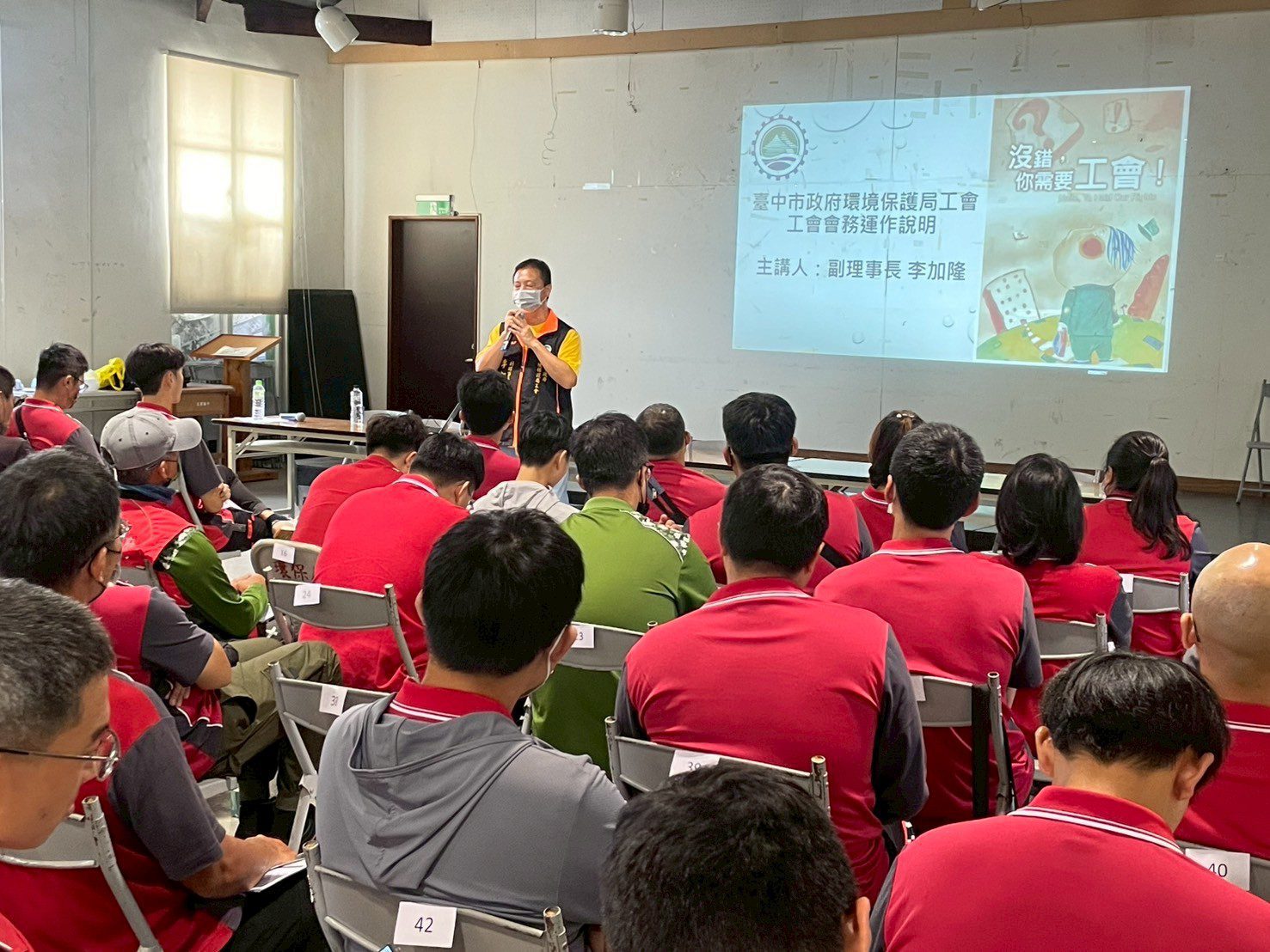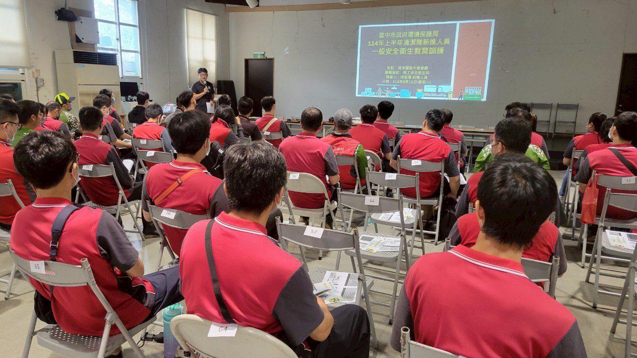台中市政府環保局日前辦理114年清潔隊新進人員教育訓練,邀集今年度1至6月間進用的75名清潔隊新進人員,接受職場安全衛生教育訓練,除提醒入行新鮮人重視職場工作安全與衛生外,更加入勞動權益與法治風紀課題,期許新進人員都能秉持安全自重、廉潔自持的職場正確行為,共同為環保清潔服務工作努力。