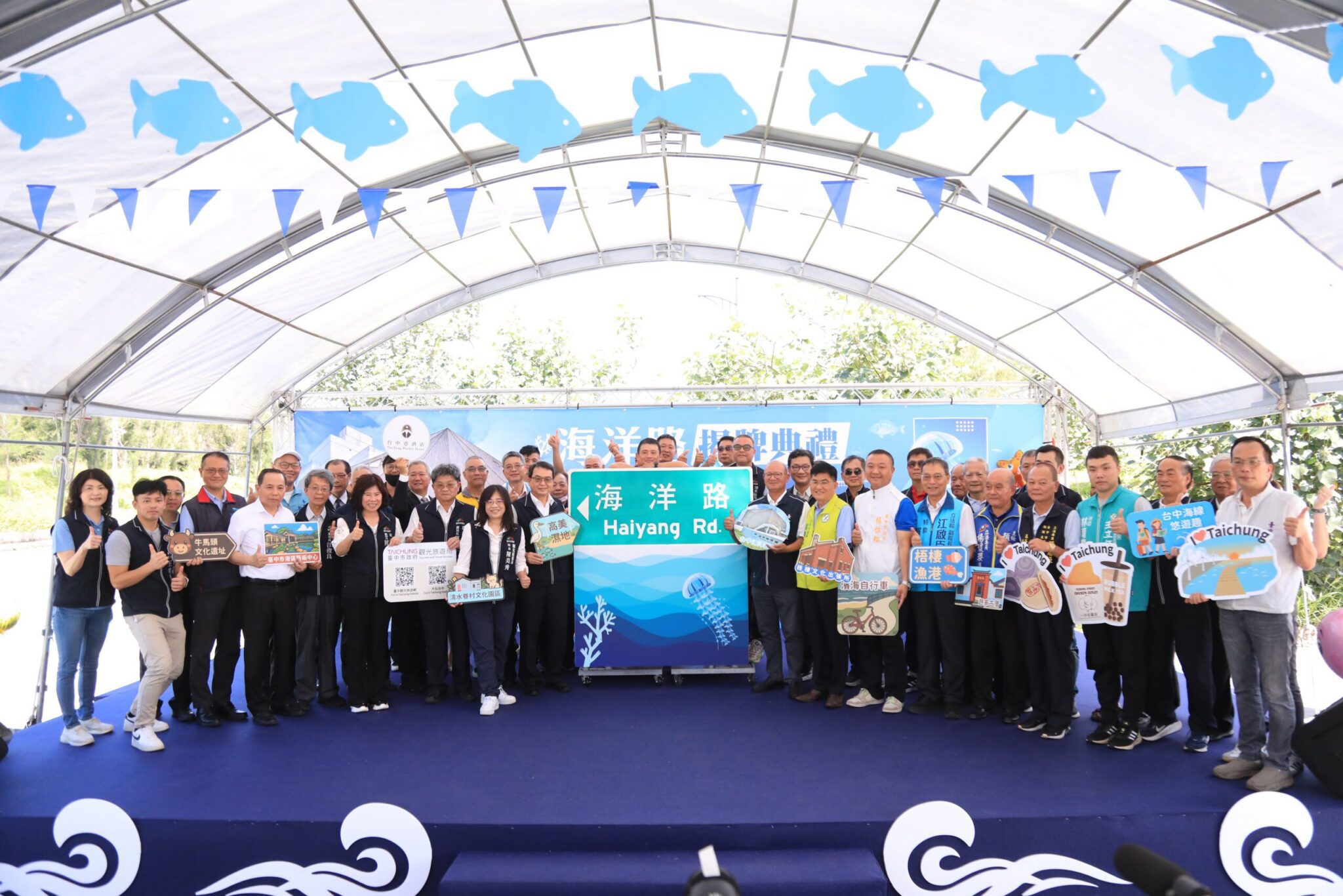 台中市海線觀光再創新頁!為迎接預計八月底開幕的台中海洋館,市府觀光旅遊局今(27)日舉行「海洋路」揭牌儀式。秘書長黃崇典表示,這條連接北堤路與環港北路的道路不僅是通往海洋館的最後一哩路,更是台中港區交通與產業升級的重要節點。「海洋路」為全國唯一以海洋為名的道路,座落於台中約50公里海岸線的中心點,位於清水與梧棲交界,兼具地理與文化意義,標誌著海線觀光整合與發展的新里程。