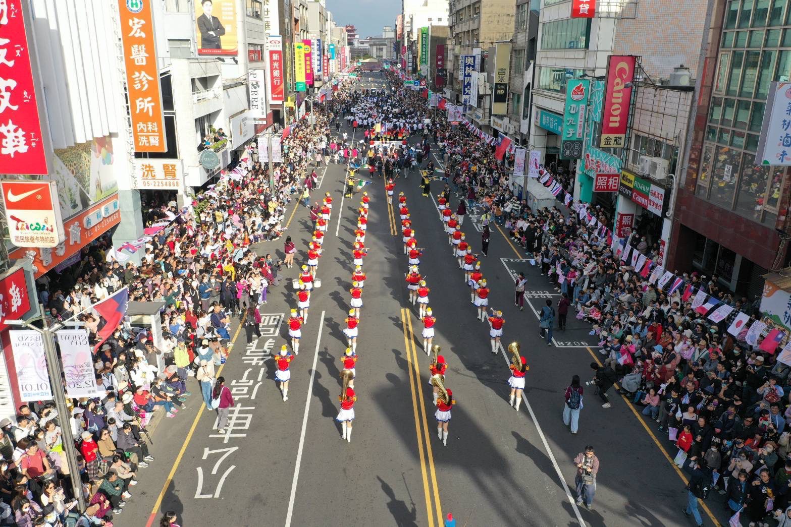 邁入第32屆的2024嘉義市國際管樂節,是全有頗具指標性的管樂盛事,也是嘉義市政府相當重視的城市節慶。今(21)日下午2點依往例,在中央噴水池圓環,盛大舉辦踩街嘉年華。市長黃敏惠與前副總統蕭萬長共同執旗,正式宣告為期12天、超過80場演出正式展開。現場聚集49支國內外優秀團隊,包含法國、日本、泰國及香港等,帶來一首首青春活力的行進管樂,熱鬧非凡。