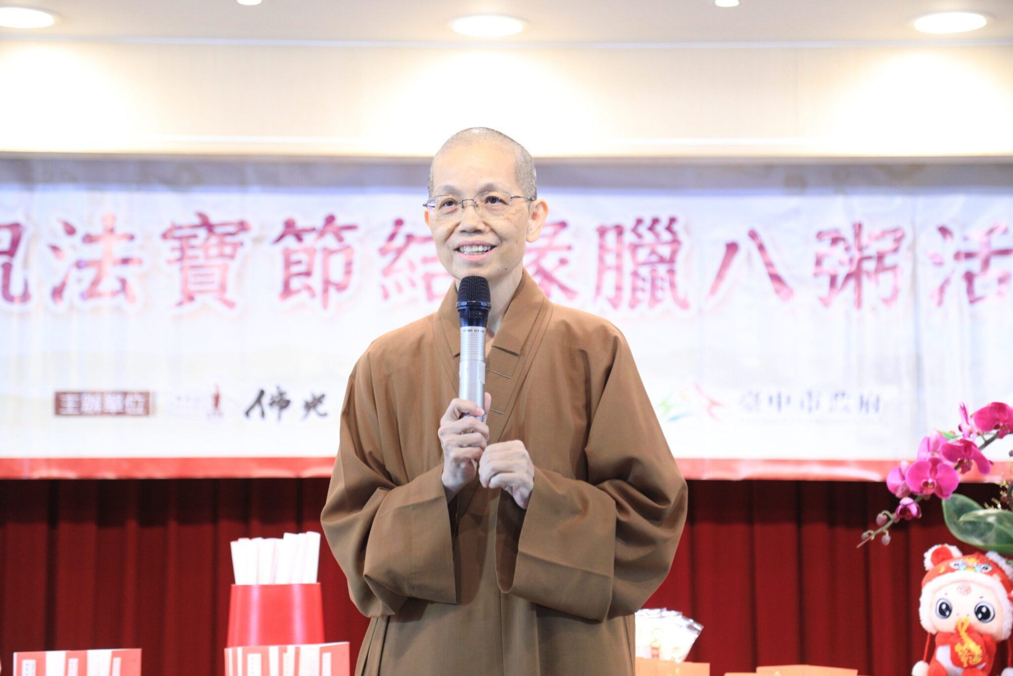 覺居法師表示,農曆十二月初八為佛陀成道日,又稱「法寶節」,佛教徒以多樣食材熬成粥供佛,稱為「臘八粥」或「佛祖粥」。其烹煮過程相當講究,「一碗精心熬煮的臘八粥」宛如市府團隊,由分布在不同崗位的同仁各司其職共同協力為台中市政努力,將台中打造為更美好的家。