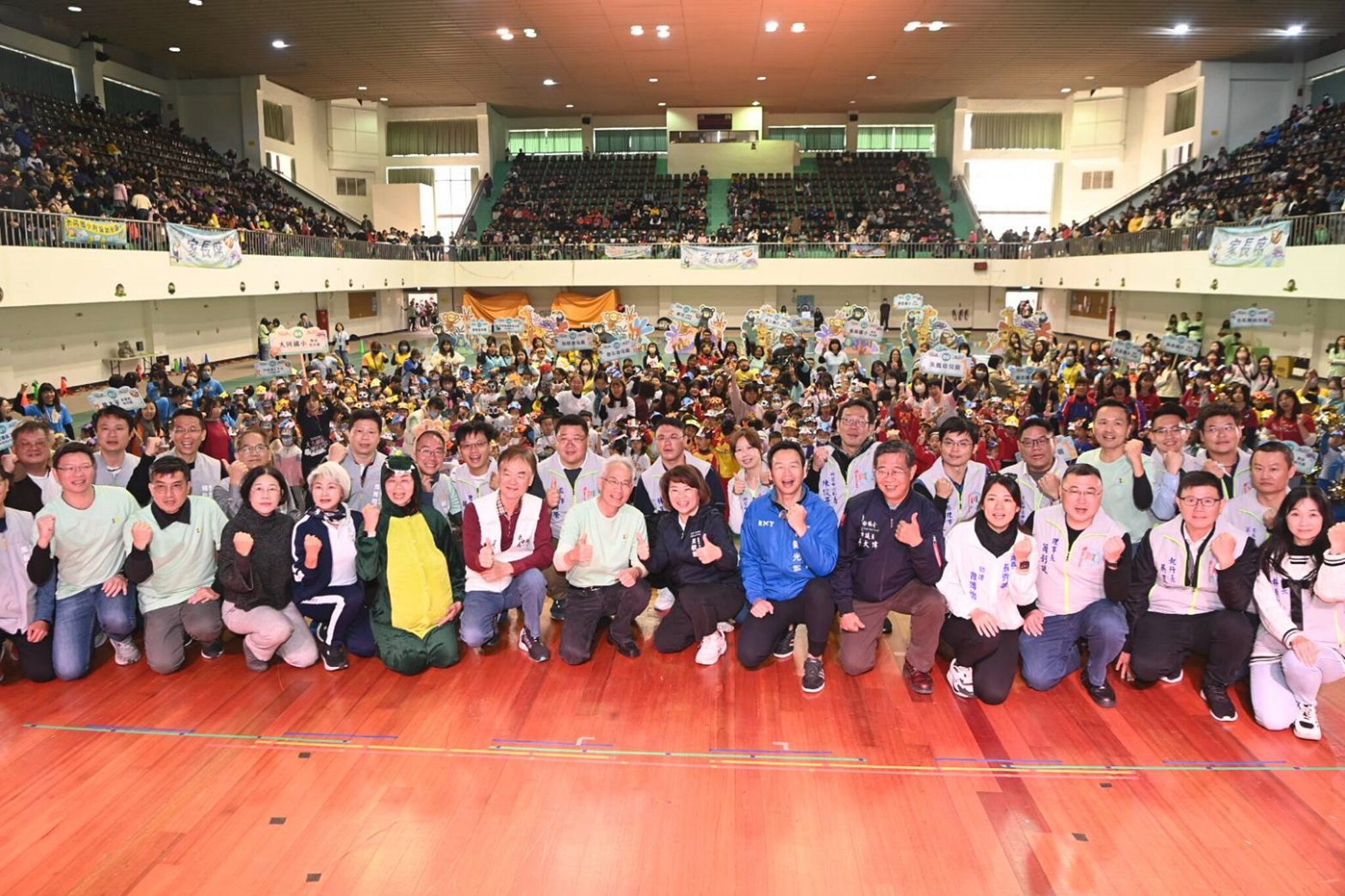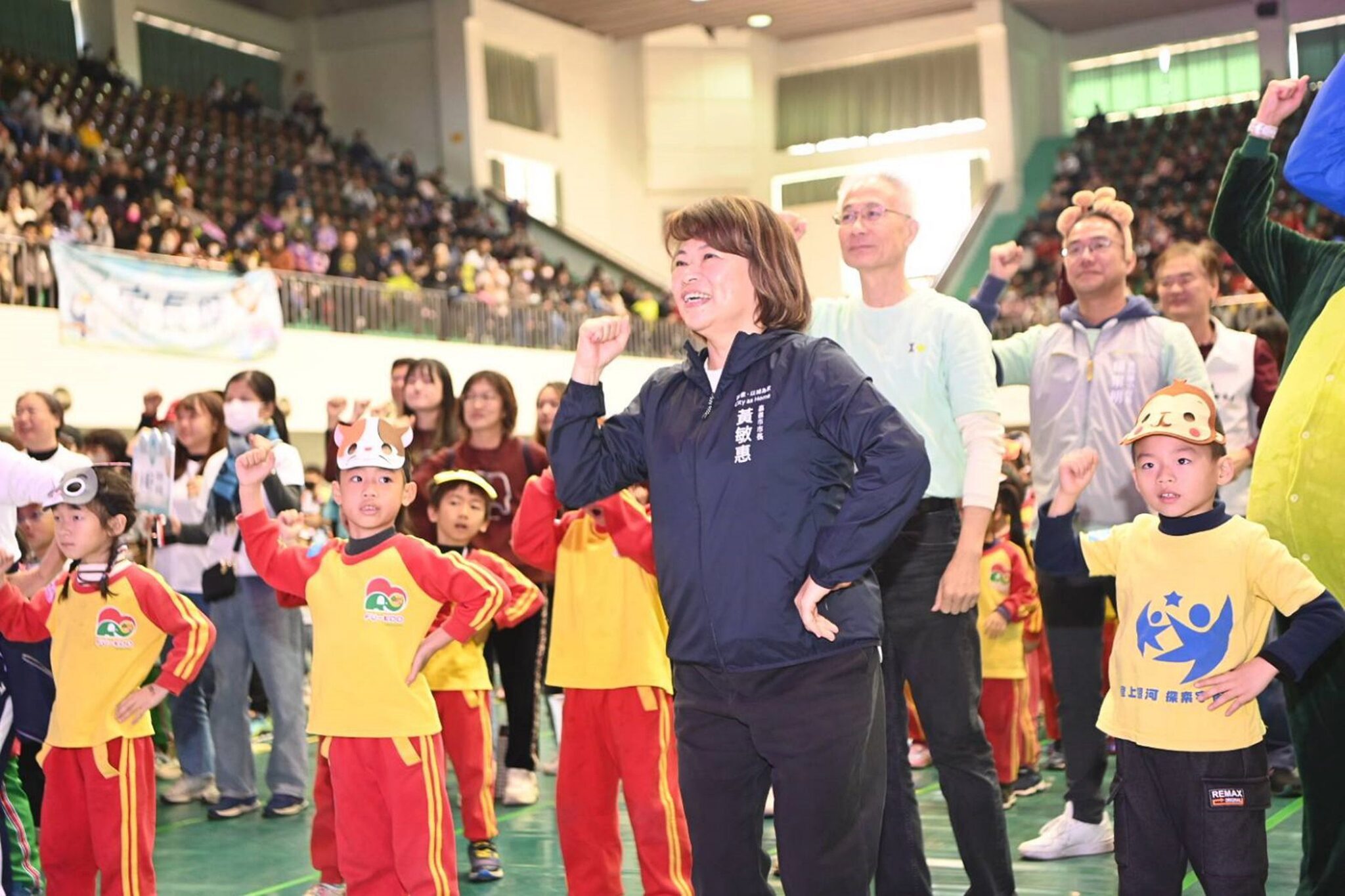 運動嘉年華會由黃敏惠市長親自主持開幕典禮,透過司儀帶領現場所有小勇士進行宣誓,為了呼應本次叢林挑戰賽的意涵,更以象徵智慧聖火的電子火把,透過點燃探險之火的啟動儀式揭開活動序幕。在比賽過程中,孩子們展現了生動活潑的鬥志,不僅努力拚搏,還在賽道上相互鼓勵,體現了友誼與團隊合作的精神。家長們在旁熱情助陣,為孩子們加油打氣,場面溫馨而熱鬧。家長們更和孩子們在親子室外闖關遊戲區,盡情體驗各種趣味運動遊戲,增進親子間的互動與情感。