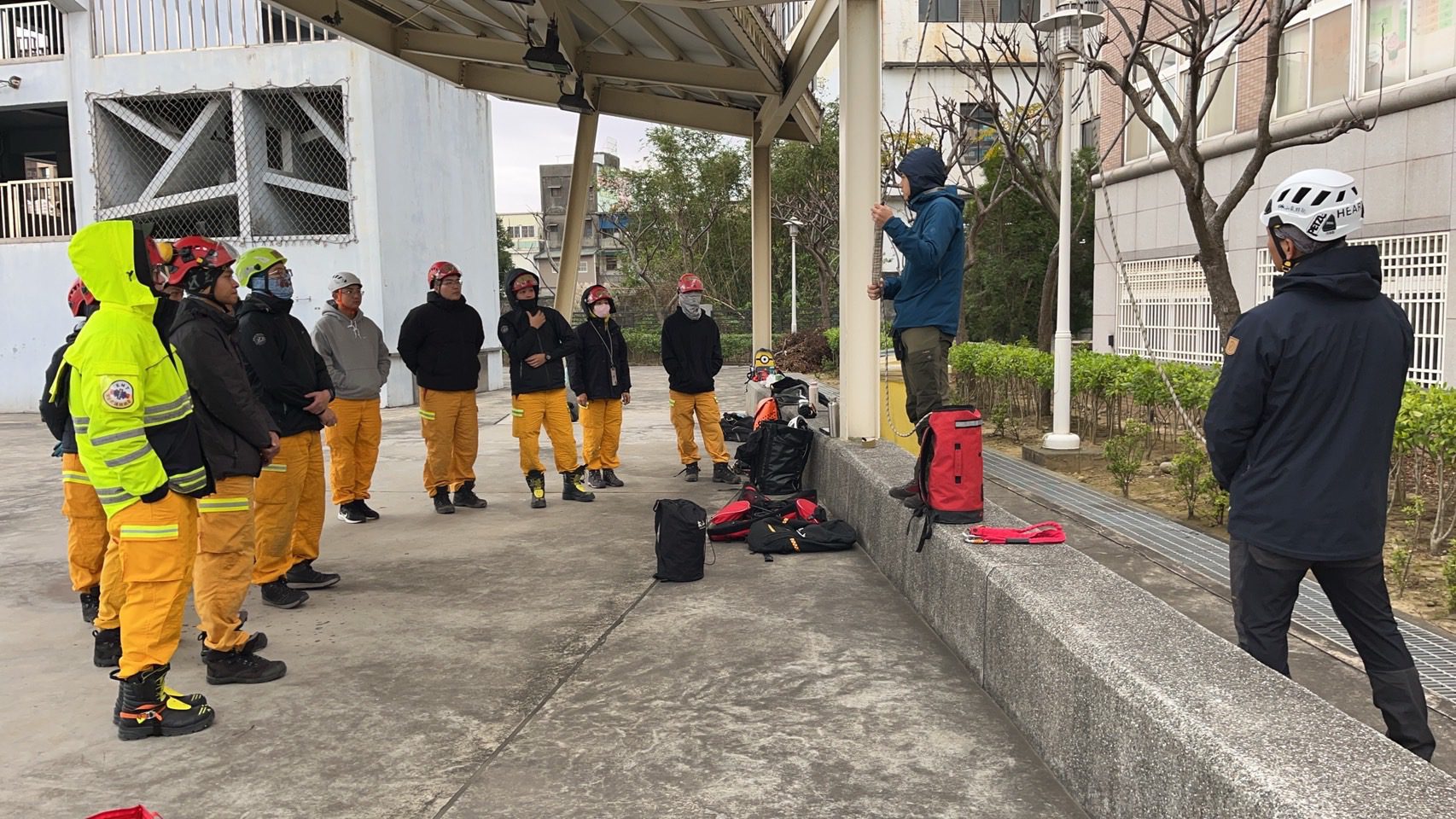 基隆市消防局於1月7日至9日期間,派遣12名特種搜救隊員,前往桃園防災教育館進行為期3天的繩索救援專業訓練。提升隊員在不可抗力災害中,於都市或野外難以抵達的地點,徒步接觸患者並利用繩索器材將其轉移至安全平台的能力。