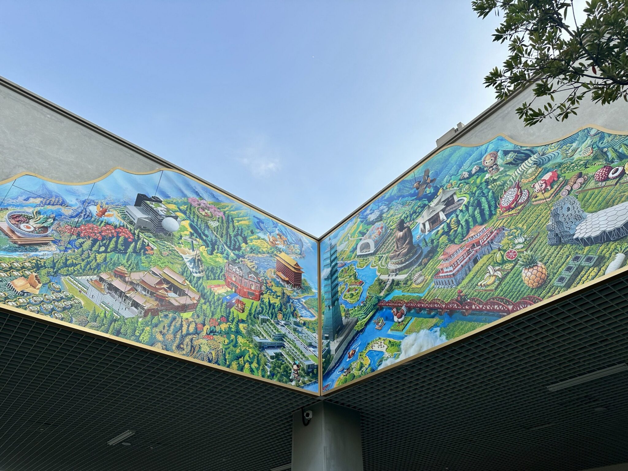 在二樓高牆上展開的《城市印象》則以陶板數位直印完成,畫面左半部呈現龍山寺、西門紅樓、臺北 101 等地標,右半部延伸至臺中、彰化、雲林等農漁產大縣,勾勒出環南市場作為全國食材集散地與文化樞紐的角色。三件作品相互串連,既是藝術品,也是市場的日常縮影,讓環南市場成為城市文化的新地標。