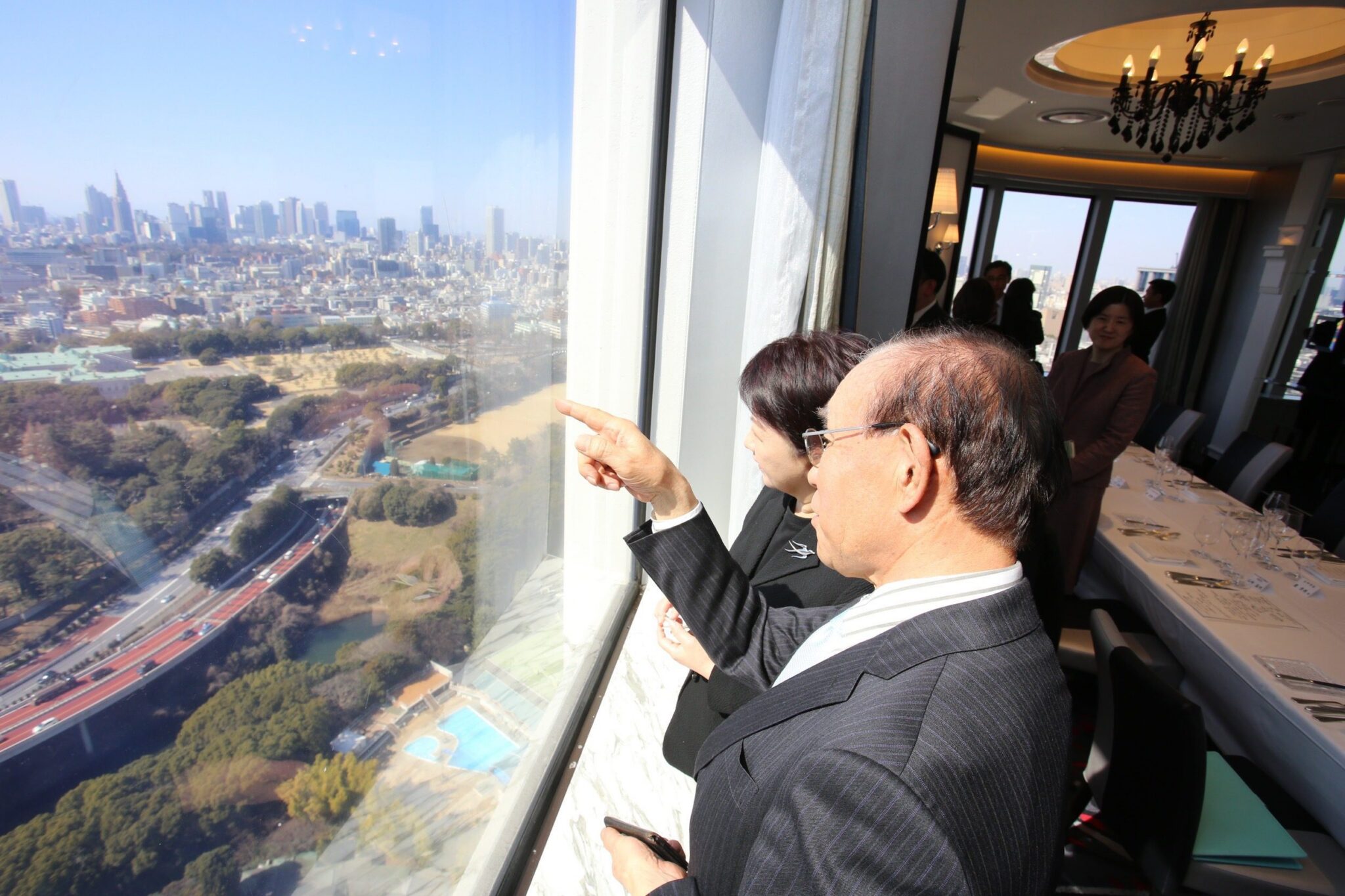 盧市長中午受邀出席日本台灣交流協會安排的午宴,日台交流協會谷崎泰明理事長熱情地邀請盧市長遠眺並介紹此次將拜訪的東京巨蛋及都市規劃特色,相談甚歡。盧市長特別向谷崎泰明理事長致謝,感謝日台交流協會一直以來對台中市府的支持與協助,讓這趟日本行既順利又愉悅。