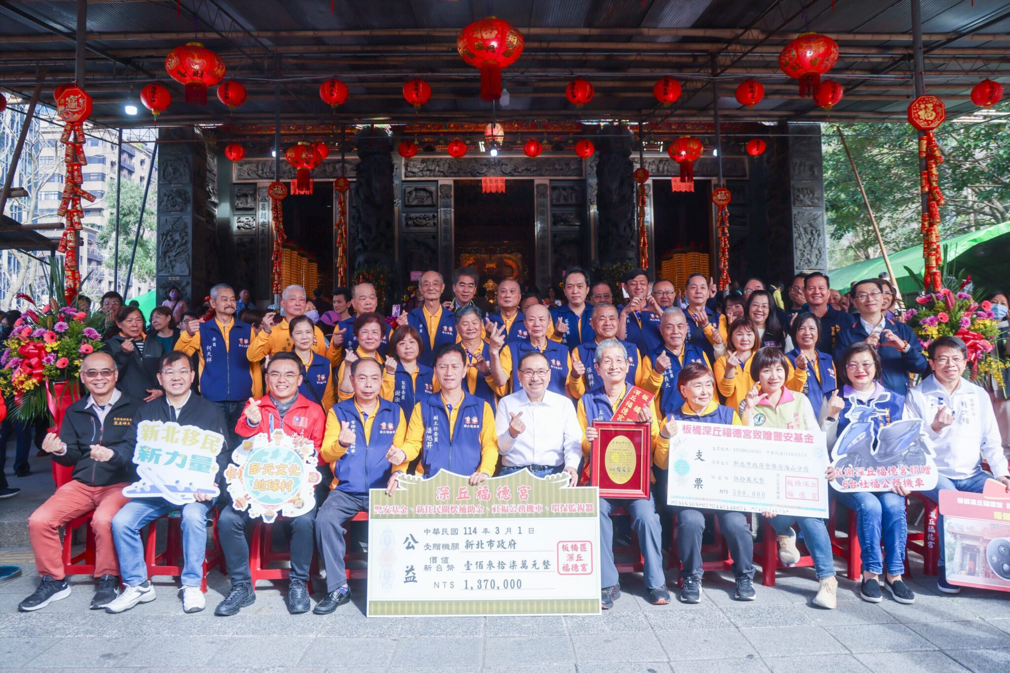 今(3/1)天是農曆二月初二福德正神聖誕,新北市長侯友宜上午前往板橋區深丘福德宮參拜,祈求市政順利、市民安居樂業,並代表市府接受福德宮捐贈137萬元,挹注市府治安、社福、環保等施政,感謝福德宮長年熱心公益,提升市府團隊能量,加倍守護市民。