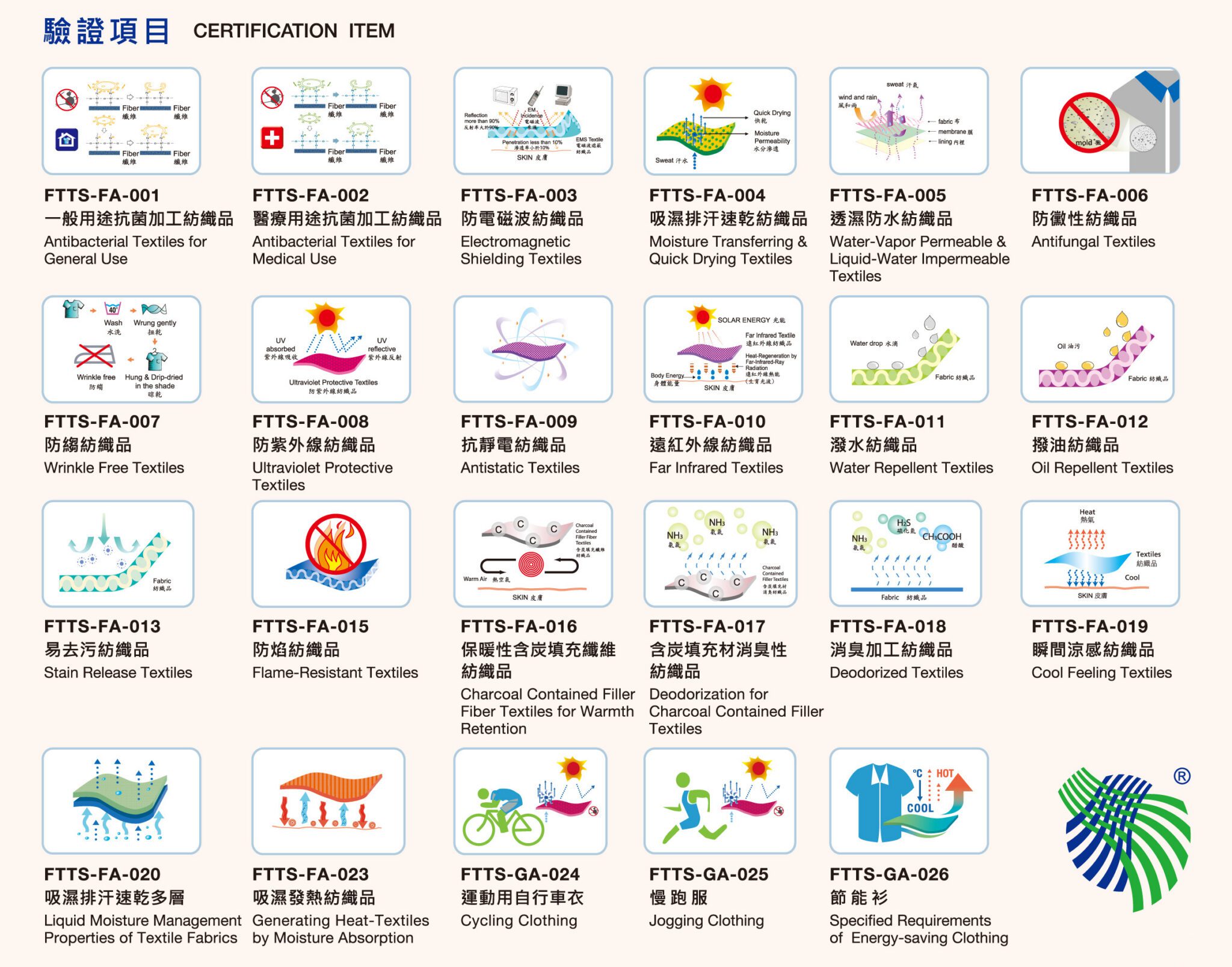 機能性紡織品具有「看不到、摸不到、用了才知道」的特性,外觀與觸感常無法充分展現效果,使得業者在行銷推廣上較難突顯產品優勢。有鑑於此,紡拓會自 2000 年推出 TFT 驗證服務,目前受理項目涵蓋防紫外線、吸濕排汗、涼感等 23 類,協助驗證各類機能產品,支援業者拓展不同市場。