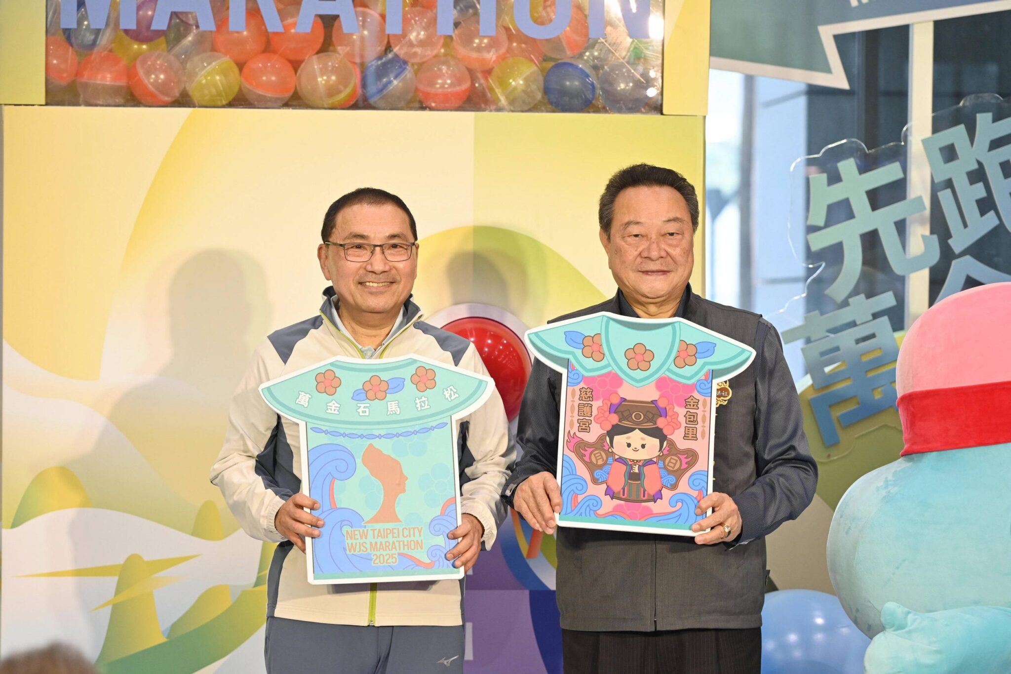 萬金石馬拉松邁入第23年,新北市府「挑戰世壯運 先跑萬金石」互動展區即日起開跑,市長侯友宜今(3)日攜手金包里慈護宮游忠義董事長共同揭曉聯名平安符,給所有跑者滿滿祝福,邀請大家一起體驗宮廟特色的萬金石馬拉松,創造好運也保平安。