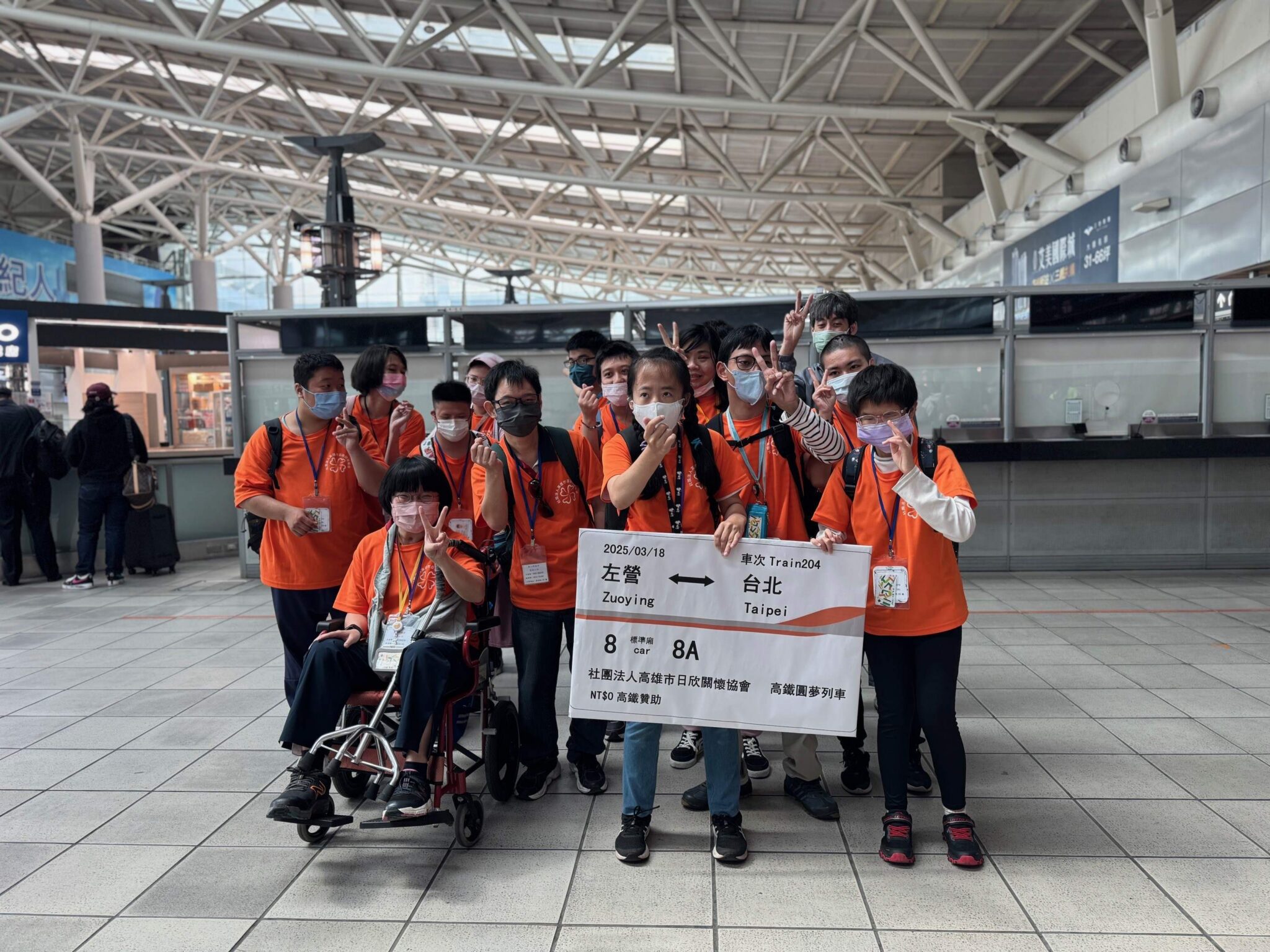 春暖花開,高鐵溫馨送愛!高鐵左營站今(18)日協助「高雄市日欣關懷協會」身心障礙夥伴們前往台北一日春遊。啟程前,高鐵左營站孫作強站長親自送上象徵性車票並合影留念,為這趟旅程送上滿滿祝福。夥伴們都非常開心及期待,行程將走訪九分老街、十分老街、黃金博物館等知名景點,走進懷舊時光。同時也讓辛苦的照顧者們相伴,一同放鬆身心,累積美好回憶。